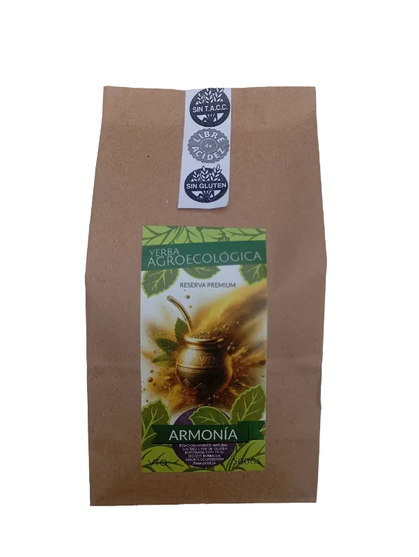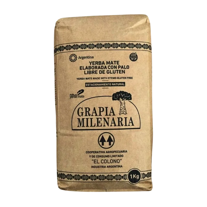 Yerba mate elaborada con palos, libre de gluten.